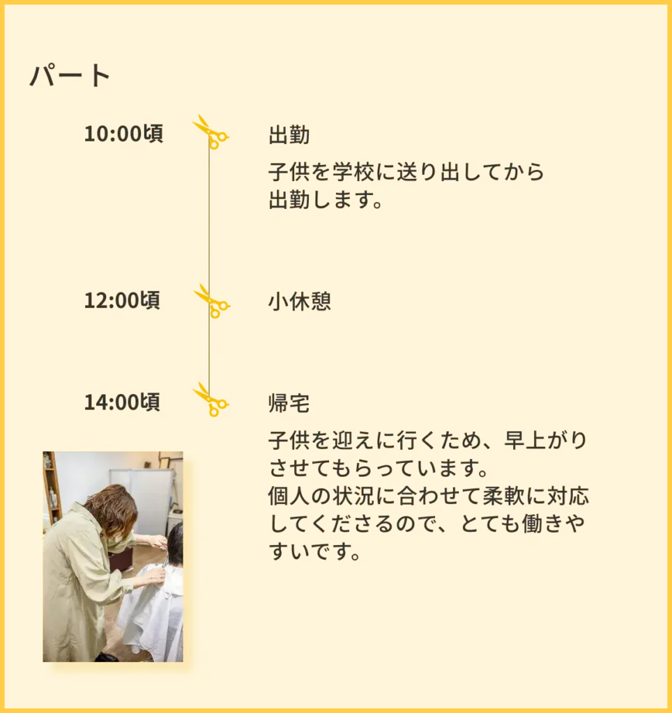 パート・アルバイトの方の勤務は希望に合わせ柔軟に対応しています。