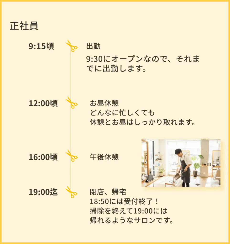 カウンセリング、ヘアカット、ヘアセット等の施術